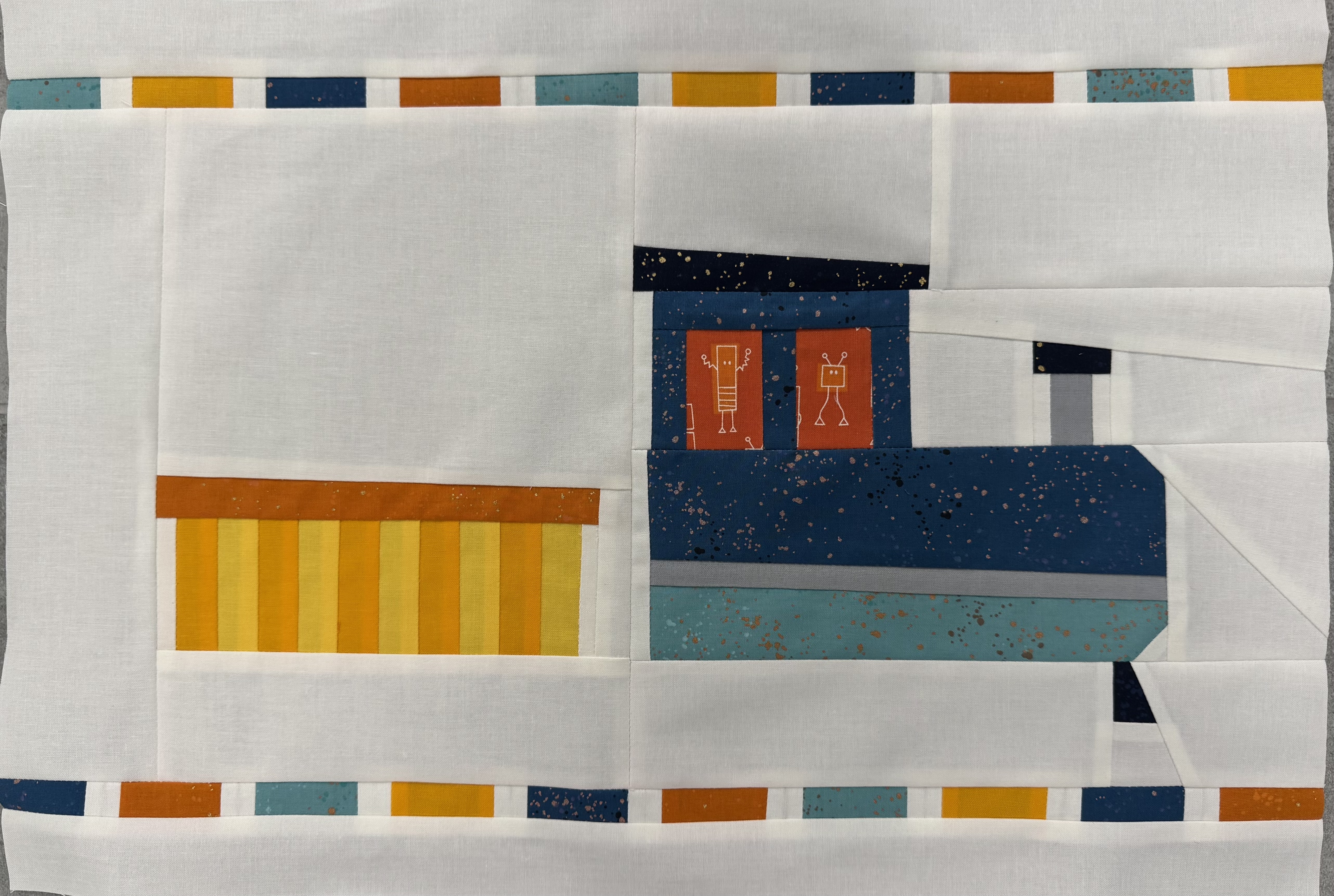 Choo choooo! We’re making a winter or Christmas train that is on it’s way with a special delivery. There are still some pieces and details missing. Those will be added later. Today we assemble our quilt top.